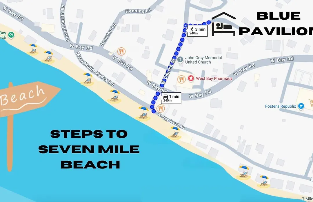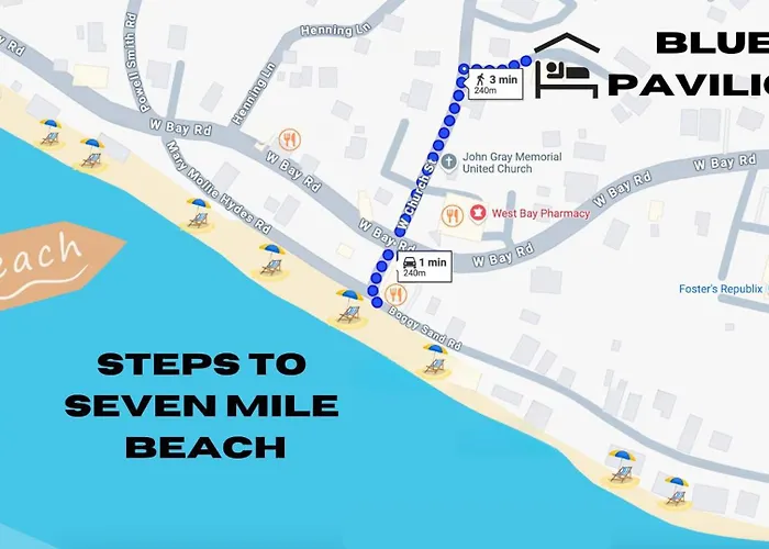 El Suite 2A, Blue Pavilion - Steps To Beach West Bay está situado a poco más de 25 minutos a pie del Museo del Motor de las Caimán, y a 450 m de la Playa de West Bay.